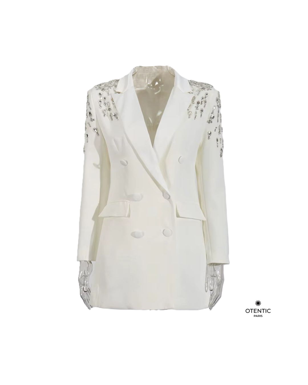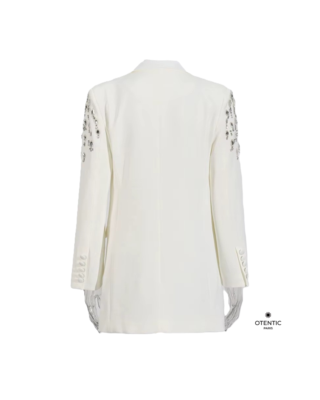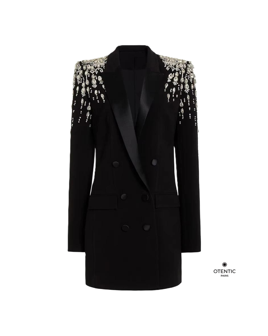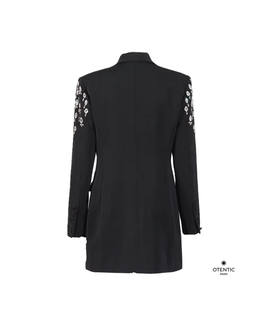 Ce blazer féminin allie élégance structurée et détails brillants. Avec ses strass délicatement cousus et sa coupe cintrée, il incarne la modernité d’un vestiaire professionnel revisité. Une pièce phare pour sublimer la silhouette avec style et assurance.