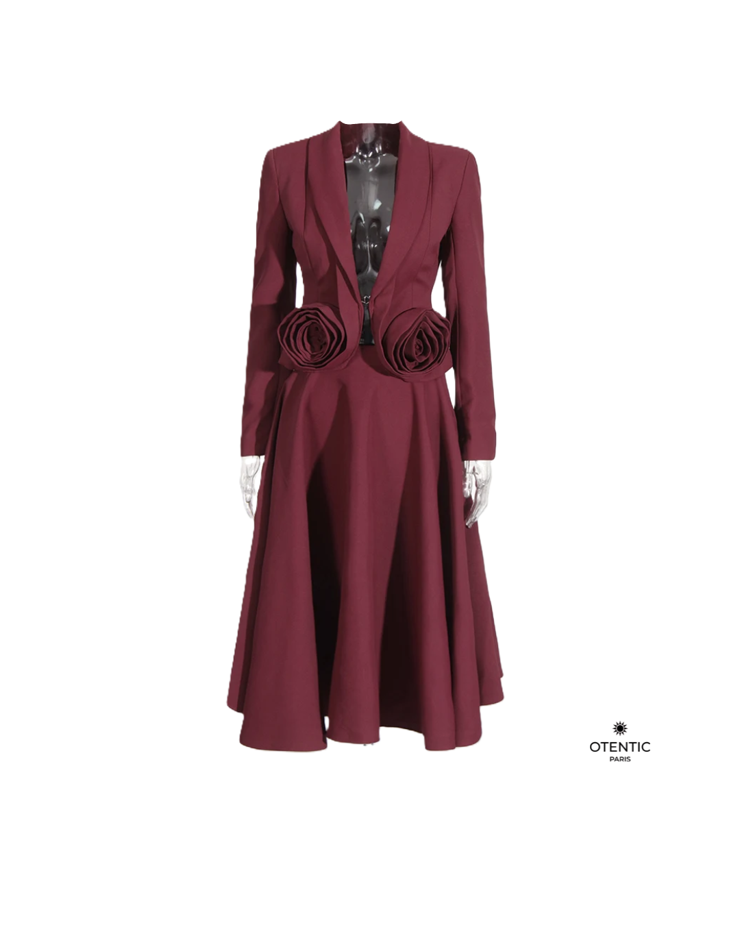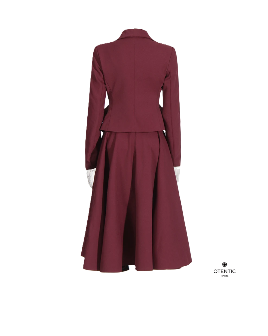 L’ensemble Rose écarlate » conjugue audace et raffinement dans un ton monochrome profond. Composé d’un blazer cintré à revers marqués et d’une jupe trapèze taille haute, il structure la silhouette tout en lui apportant de la fluidité. Les appliques épissées discrètes ajoutent du relief et du caractère à cet ensemble inspiré des vestiaires de créateurs. Chic, féminin, et résolument moderne, Rose écarlate » s’impose comme un essentiel de la femme contemporaine.