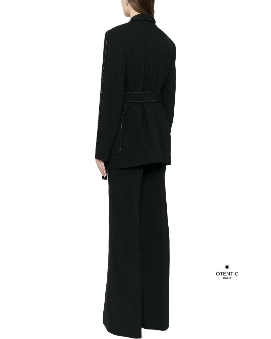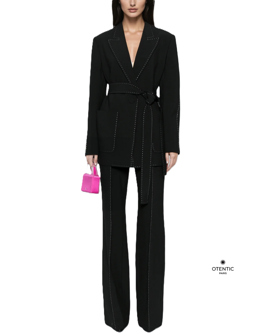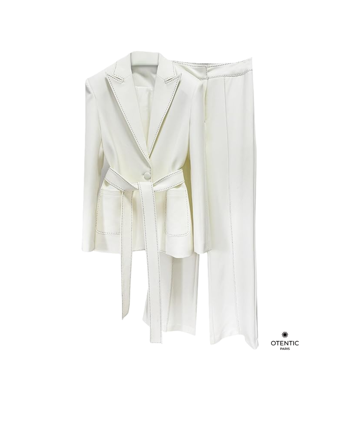 L’ensemble « Victoria » incarne la puissance tranquille et l’élégance sur-mesure. Pensé comme une tenue de styliste, il allie la rigueur des coupes couture à la fluidité des matières modernes. Le blazer à col cranté dessine une silhouette affirmée, tandis que le pantalon taille haute à coupe droite allonge naturellement la jambe. Un duo parfaitement équilibré, entre autorité et féminité, pour les femmes qui avancent avec classe et détermination.