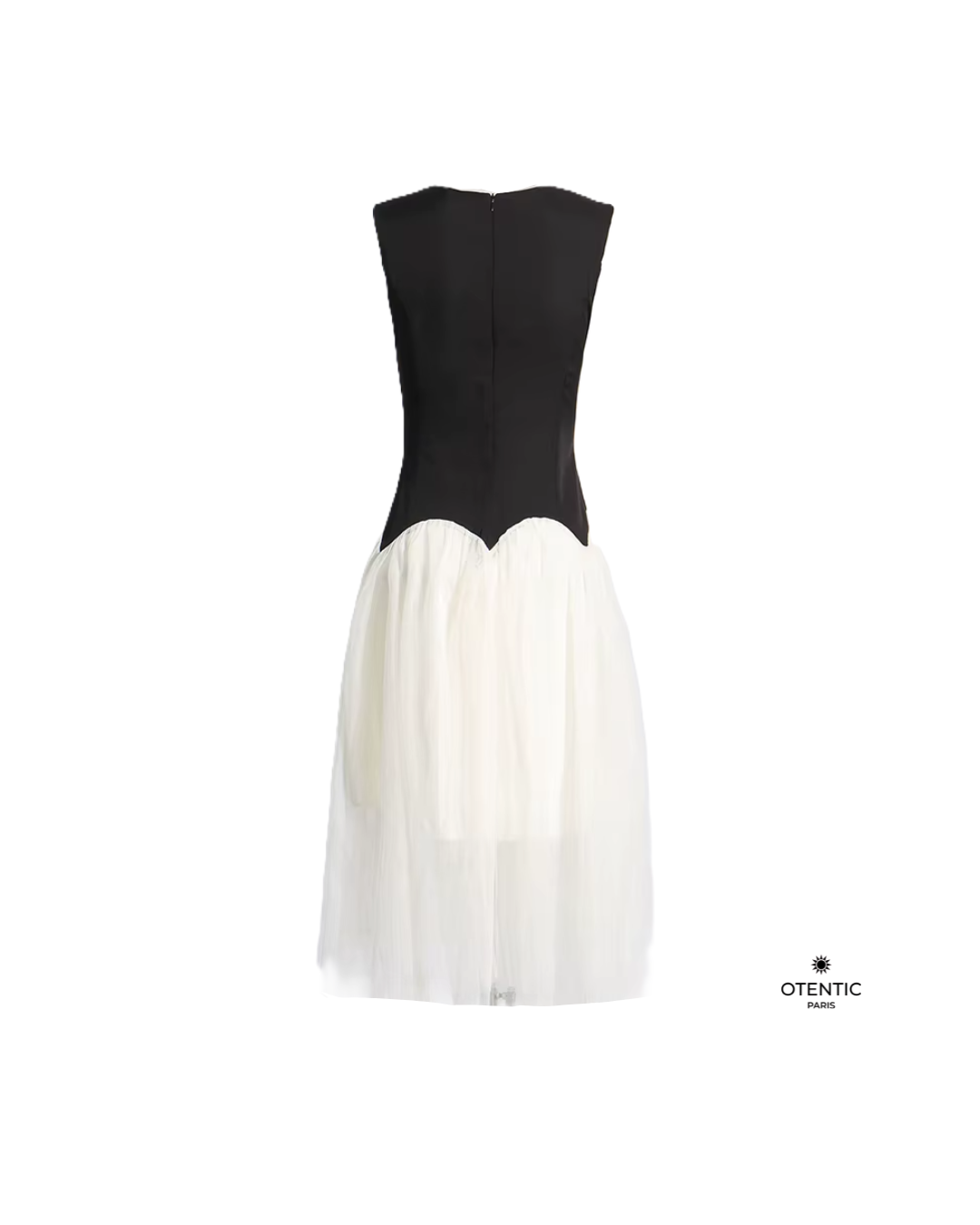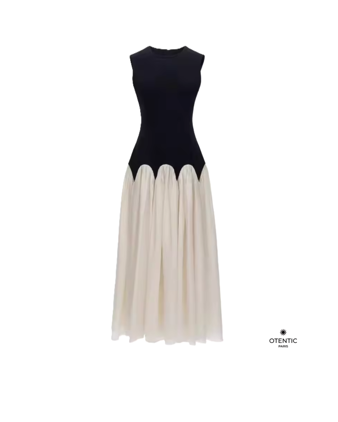 Icône de raffinement, la robe « Duo Impérial » est une pièce maîtresse de la collection Vendôme. Avec son buste noir structuré et sa jupe ivoire vaporeuse à taille ondulée, elle incarne l’équilibre parfait entre puissance et délicatesse. Son design bicolore en contraste graphique évoque l’univers des grandes maisons de couture, entre sobriété sculpturale et mouvement romantique.