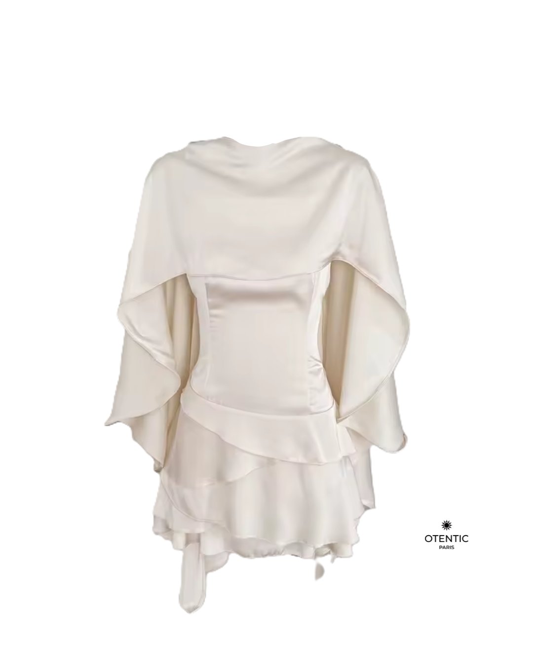 o Épaules dénudées d’un côté, manches cape de l’autre